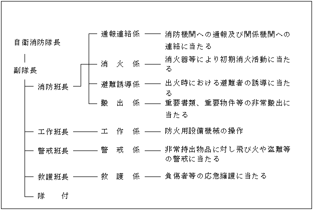 自衛消防隊の組織及び任務